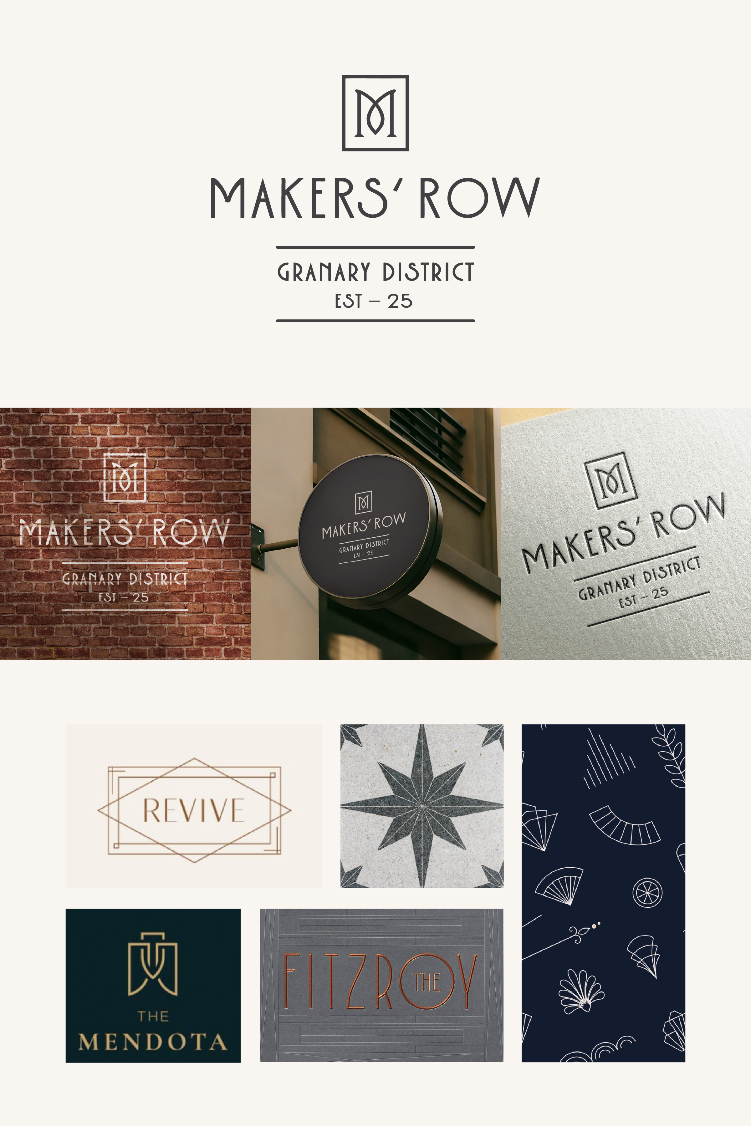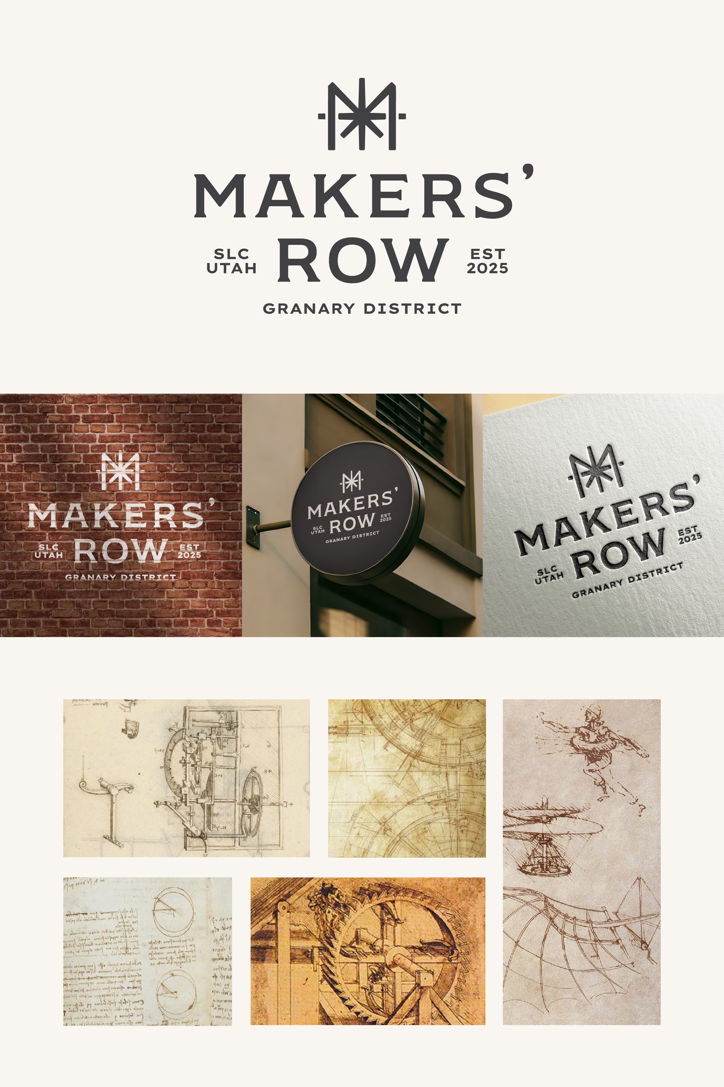 As the graphic designer on the project, I developed the full visual identity for the complex — exploring multiple logo iterations, refining the color palette, and building a brand system that honors the district’s industrial roots while positioning Makers Row as a forward-thinking residential destination.